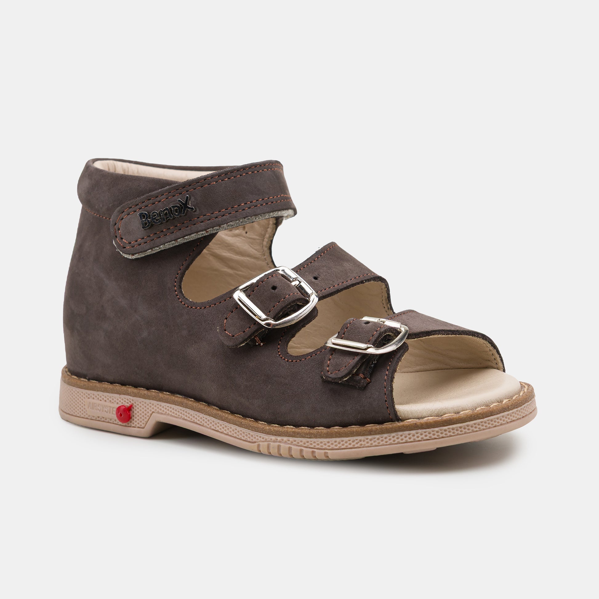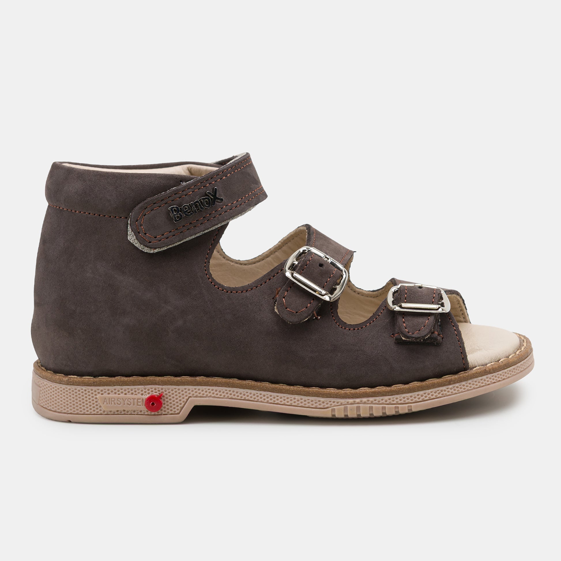 A BenoX ClassicBuckle Gyerek Szandál időtálló és elegáns választás a nyári napokra. 100% prémium bőrből készült, amely garantálja a tartósságot és a kényelmet egész napos viselet során. A masszív, rugalmas talp biztos tapadást nyújt, így a gyermek magabiztosan mozoghat különböző felületeken.